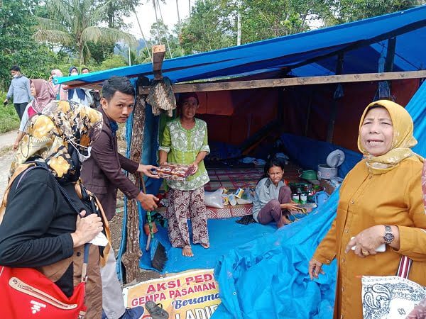 Saat awak media berkomunikasi di direct message instagram dengan bapak Doni Marlius sebagai dosen AKBP Padang mengatakan “kami bekerjasama dengan pihak kecamatan untuk mendata warga yang terdampak gempa dan langsung menyerahkan bantuan kepada masyarakat”
