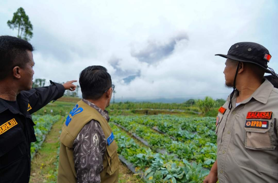 Bupati Tanah Datar Eka Putra, SE, MM bersama OPD terkait terus meninjau kondisi bersiaga di Pinggang Marapi yang mengalami erupsi sejak Minggu sore (3/12) lalu.