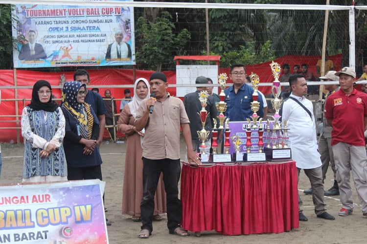 Salingka Media, Pasaman Barat – Bupati Pasbar harapkan Tournament Volley Ball Cup IV Open 3 Sumatera. Ucapan terima kasih sebesar-besarnya kepada panitia penyelenggara khususnya Pemuda Karang Taruna Sungai Aur, masyarakat, tim putra putri serta sponsor dan donatur yang ikut serta mensukseskan pertandingan ini. Besar harapan kami, agar turnamen ini dilanjutkan kembali dan insya Allah kami siap membantu.