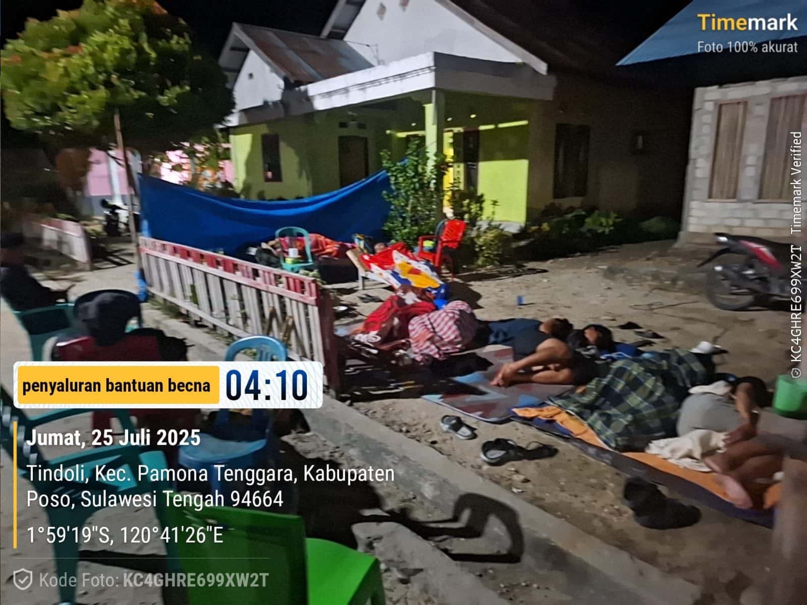 Di Sulawesi Tengah, gempa bumi berkekuatan magnitudo 5,7 mengguncang wilayah Kabupaten Poso pada Kamis (24/7). Menurut laporan dari BPBD setempat, gempa susulan masih terasa di tengah masyarakat. Hingga Kamis malam, proses pendataan masih berlangsung. Sementara ini tercatat empat warga mengalami luka ringan dan sebanyak 609 kepala keluarga (sekitar 2.011 jiwa) terpaksa mengungsi. Bangunan terdampak antara lain 14 rumah rusak berat, 21 rusak ringan, serta satu fasilitas pendidikan dan satu tempat ibadah yang turut rusak ringan.
