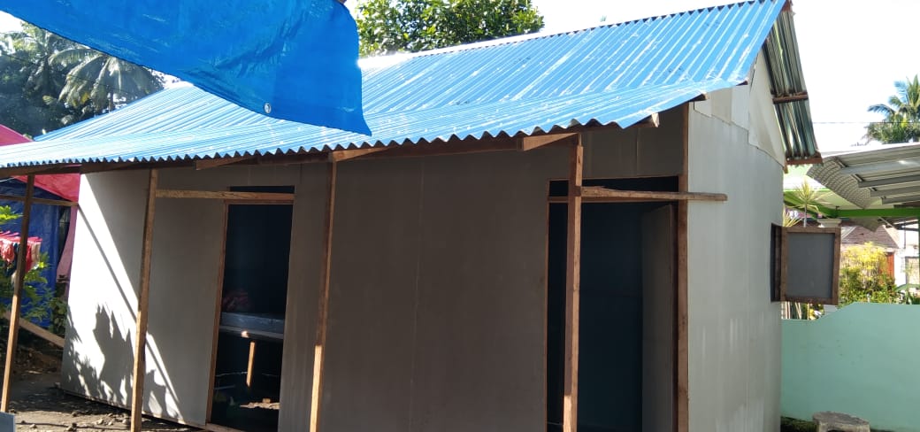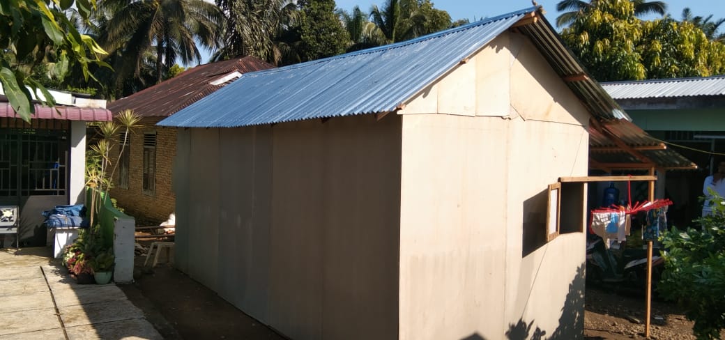“Desain 3×6 meliputi dua ruangan, dua pintu dan dua jendela dengan mengunakan dinding Asbestos, beratap seng yang berlantaikan semen coran. Dan untuk bajet satu unit Huntara yakni Rp8 juta,” katanya.