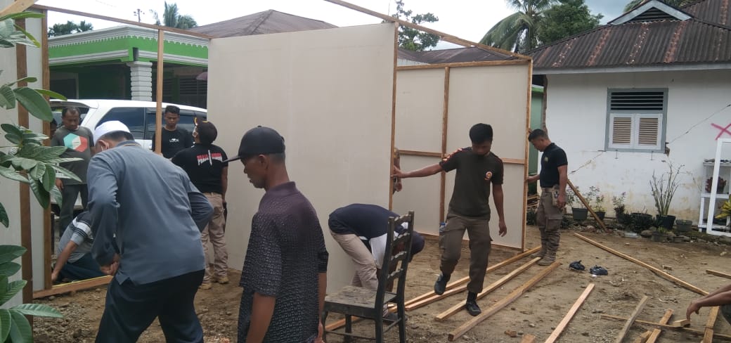 Bupati Hamsuardi juga menyampaikan, butuh sekitar 6 jam untuk menyelesaikan satu unit Huntara, dan sampai hari ini sudah dibangun dua contoh Huntara.