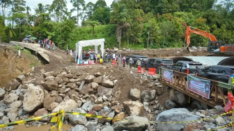 Kementerian PU saat ini menyelesaikan pemasangan jembatan sementara jenis armco dan bailey untuk membuka kembali akses kendaraan. Di saat yang sama, tim teknis mulai menyusun desain pembangunan jembatan permanen sebagai solusi utama penghubung ruas jalan yang sebelumnya terputus. Dody menilai keberadaan jembatan permanen menjadi kebutuhan mendesak mengingat karakter ekstrem kawasan tersebut.