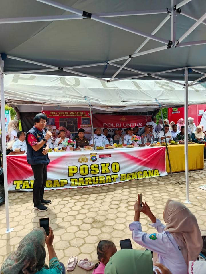 Salingka Media – Kak Seto semangati anak korban bencana di Kecamatan IV Nagari Bayang Utara, Kabupaten Pesisir Selatan, Rabu (7/1/2026), dengan mengunjungi langsung lokasi pengungsian korban banjir dan longsor. Kehadiran pemerhati anak nasional itu bertujuan memberikan dukungan psikososial sekaligus membantu pemulihan trauma anak-anak terdampak bencana.