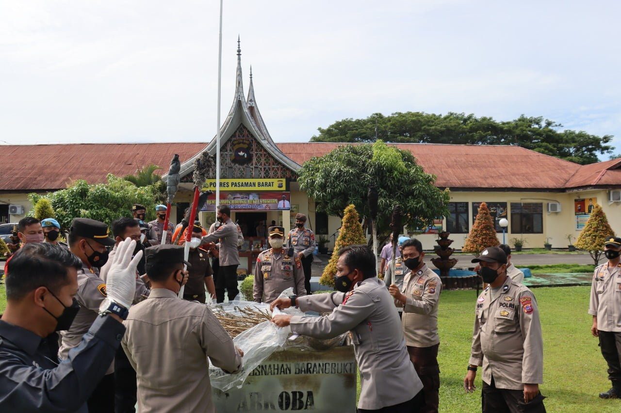 Salingka Media, Pasbar – Kapolres Pasaman Barat Bersama Forkopimda Pasaman Barat Musnahkan Barang Bukti 85 Batang Ganja.
