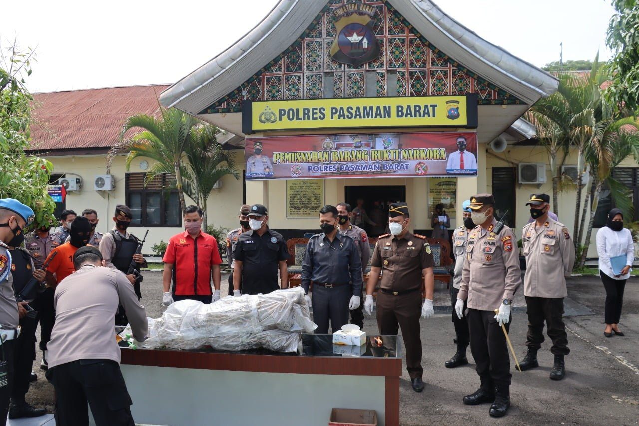 Pemusnahan barang bukti Narkotika Golongan I jenis ganja didapat dari tersangka AMH panggilan R (36) warga Kampung Padang Jorong Pasa Lamo, Nagari Kajai Kecamatan Talamau Kabupaten Pasaman Barat.