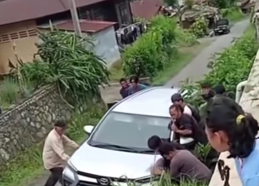 Momen dramatis terjadi sesaat setelah kecelakaan. Warga sekitar yang berdatangan ke lokasi awalnya sama sekali tidak menaruh curiga bahwa mobil tersebut dikendarai oleh pelaku kejahatan. Dengan niat tulus membantu sesama, masyarakat bergotong royong mendorong bodi mobil agar bisa keluar dari jepitan parit. Upaya evakuasi manual tersebut berhasil mengembalikan mobil ke badan jalan, namun di saat itulah fakta mengejutkan terkuak.