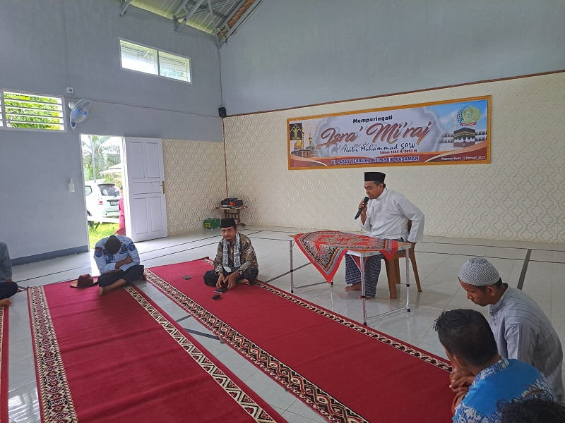 Ust. Suharman dalam tausiahnya menyampaikan hikmah perjalanan Nabi Muhammad SAW, memberikan pelajaran tentang bagaimana umat muslim memaknai momen tersebut dengan rasa syukur, keimanan dan ketaqwaan kepada Allah.