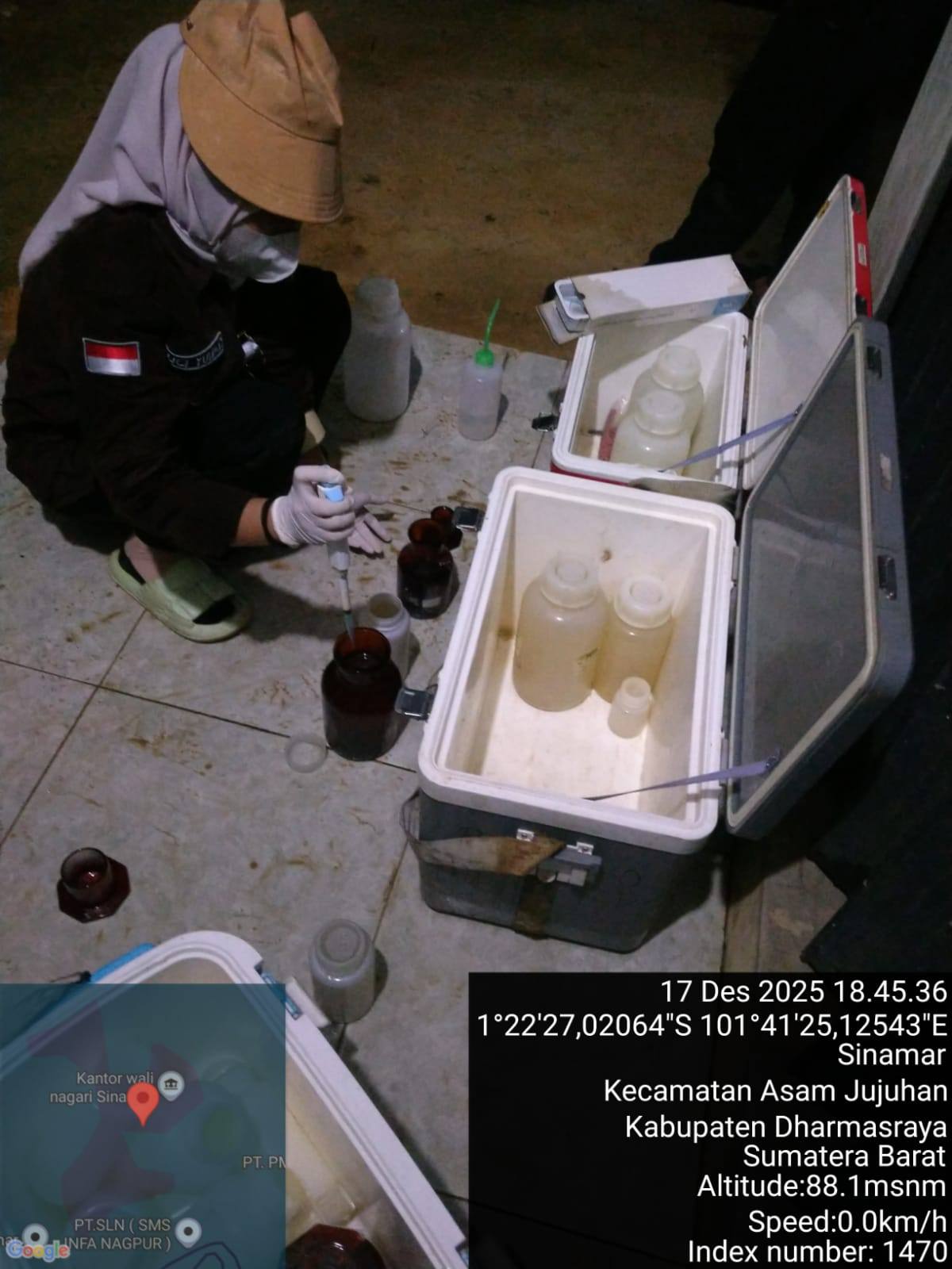 Salingka Media – Dinas Lingkungan Hidup (DLH) Kabupaten Dharmasraya bergerak cepat menanggapi laporan warga mengenai air Batang Suir yang berubah warna dan berbau. Langkah nyata Pemkab Dharmasraya uji laboratorium Sungai Suir terkait dugaan pencemaran limbah PT Tidar Kerinci Agung bertujuan untuk membuktikan secara ilmiah kualitas air di Nagari Sinamar, Kecamatan Asam Jujuhan. Tim teknis mengambil sampel air sungai pada sore hari setelah menerima aduan masyarakat pada 17 Desember 2025.