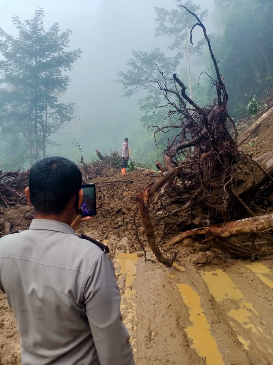 Salingka Media, Pasaman Barat – Longsor kembali terjadi di polong onam talu kapolsek AKP JUNAIDI SH gerak sigap evakuasi pasien yang mau di rujuk ke RSUD jambak. 12 maret 2022, musibah gempa 6,2 SR yang melanda kabupaten Pasaman dan Pasaman Barat menyisakan kesedihan mendalam selain dari meruntuhkan sejumlah rumah penduduk dan fasilitas umum juga memicu longsor di beberapa titik di kecamatan talamau.