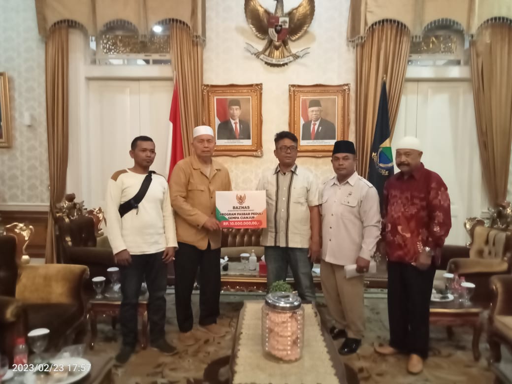 Dalam kesempatan yang sama Baznas Pasbar juga menyerahkan Bantuan kepada warga Cianjur yang berasal dari Pasbar sejumlah Rp. 10 juta.