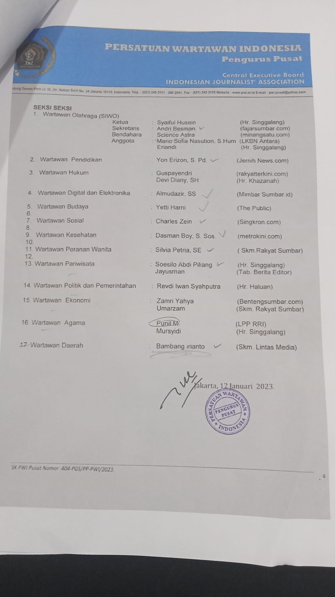 Pelantikan Pengurus PWI Sumbar 2022-2027 Resmi dilantik PWI Pusat