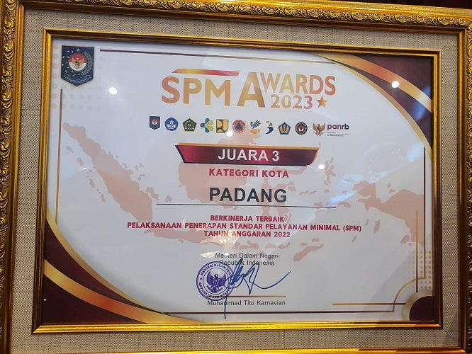 Pemerintah Kota Padang berhasil meraih juara 3 (tiga) kategori Kota Berkinerja Terbaik Pelaksanaan Penerapan SPM Tahun Anggaran 2022. Kota Padang merupakan satu-satu daerah di Sumatera Barat yang meriah penghargaan SPM Award kategori Kota Berkinerja Terbaik.