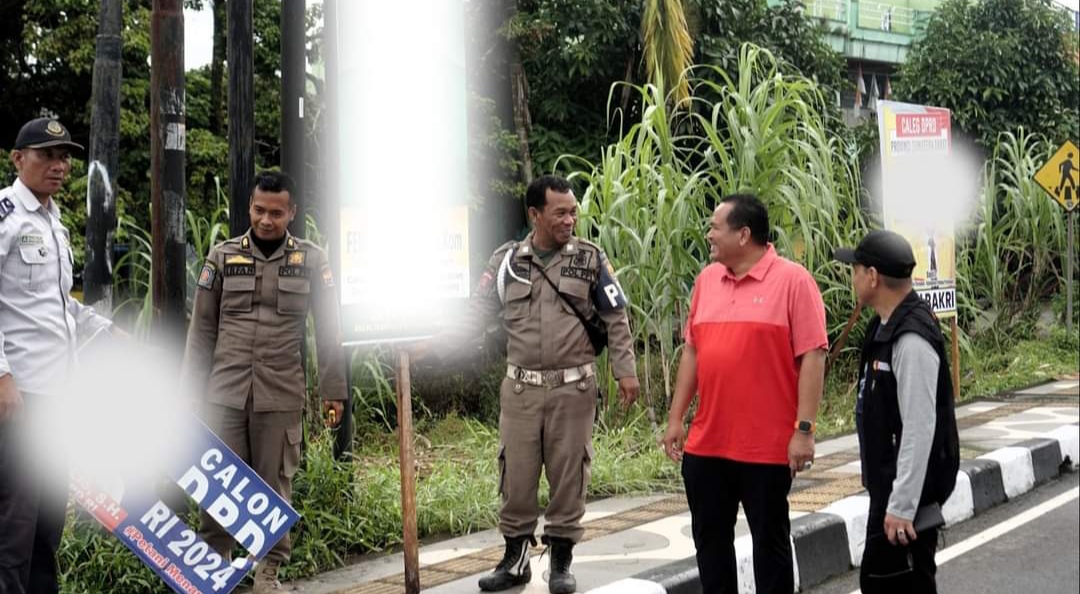 Salingka Media, Pariaman – Sekda Kota Pariaman Yota Balad turun lapangan bersama Ketua Bawaslu Kota Pariaman Riswan dan Ketua KPU Kota Pariaman Ali Unan, guna memantau penertiban Alat Peraga Kampanye (APK) dan Bahan Kampanye (BK) yang dipasang di fasilitas umum dan tempat terlarang di Kota Pariaman, Rabu (17/1/24).