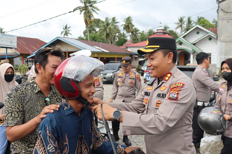 Pembagian helm secara gratis kembali dilaksanakan yang dipimpin langsung oleh Kapolres Pasaman Barat AKBP Agung Basuki, S.I.K., M.M dan berakhir di Kecamatan Kinali, Rabu (22/2/2023) siang.