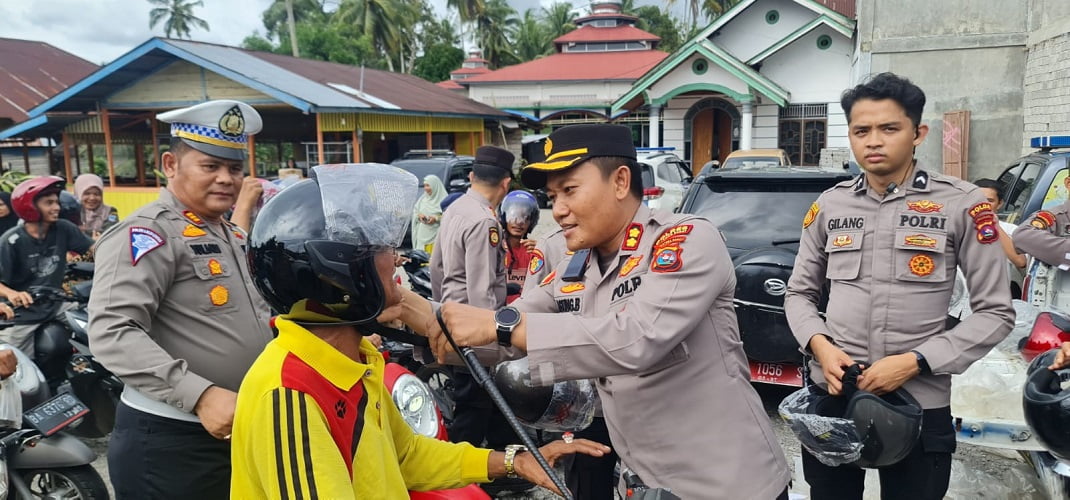 Salingka Media, Pasaman Barat – Program 1.000 Helm untuk keselamatan masyarakat berakhir di Kecamatan Kinali Pasaman Barat. Polres Pasaman Barat telah membagikan helm secara gratis melalui program 1.000 helm untuk keselamatan masyarakat yang dilaksanakan disejumlah titik rawan fatalitas kecelakaan.
