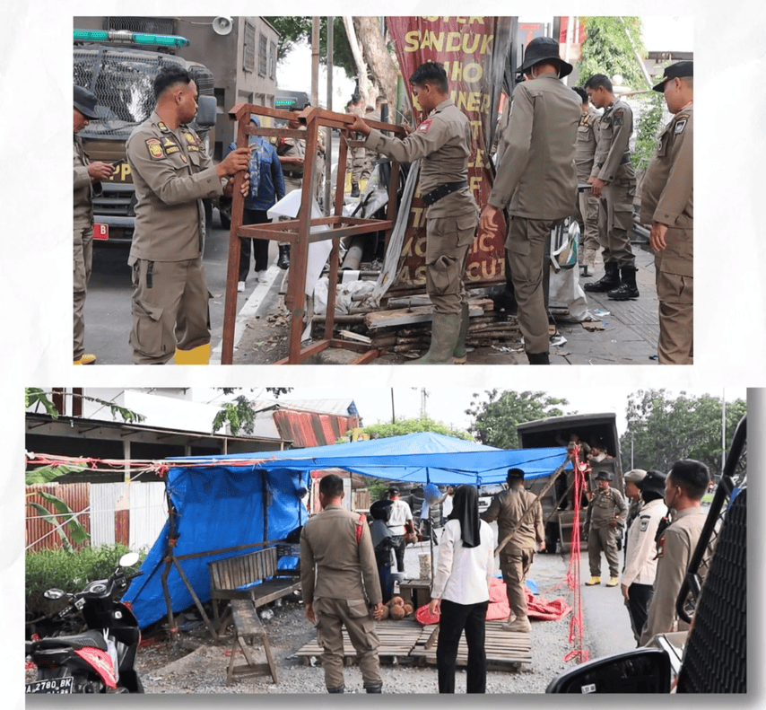Satpol PP Kota Padang tertibkan PKL dan gepeng yang terjaring patroli dengan membawa mereka ke Kantor Satpol PP untuk pendataan. Setelah proses tersebut, petugas menyerahkan para pelanggar kepada Dinas Sosial agar memperoleh pembinaan lanjutan sesuai ketentuan yang berlaku.