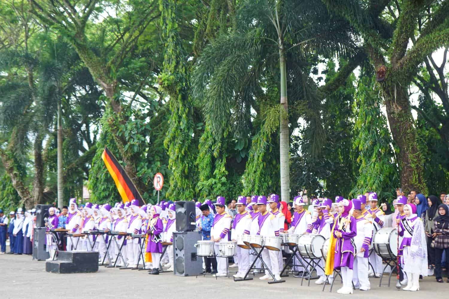 Dalam formasi yang sempurna, Nauval Zaki Suandana dari SMAN 1 Pulau Punjung bertugas mengibarkan bendera, dibantu oleh Rafael Kurniawan dari SMAN 1 Sungai Rumbai sebagai penggerek. Sementara itu, Muhammad Novandu Faris dari SMKN 1 Sungai Rumbai memimpin kelompok, dan Ifa Nabila Lubis dari SMAN 1 Sitiung membawa baki. Gerakan mereka yang kompak dan penuh keyakinan membuat seluruh pandangan tertuju pada mereka. Diiringi lagu kebangsaan Indonesia Raya, bendera perlahan naik dan berkibar gagah di langit Dharmasraya.