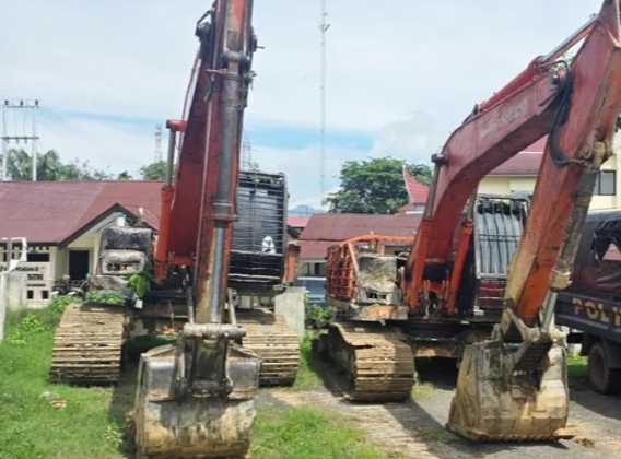 Selain menangkap pelaku, polisi mengamankan sejumlah barang bukti dari lokasi. Barang bukti itu mencakup dua unit ekskavator merek Hitachi berwarna oranye, dua lembar karpet saringan emas, butiran halus berwarna kuning yang diduga emas, serta sebuah pondok darurat yang para pekerja gunakan sebagai tempat istirahat.