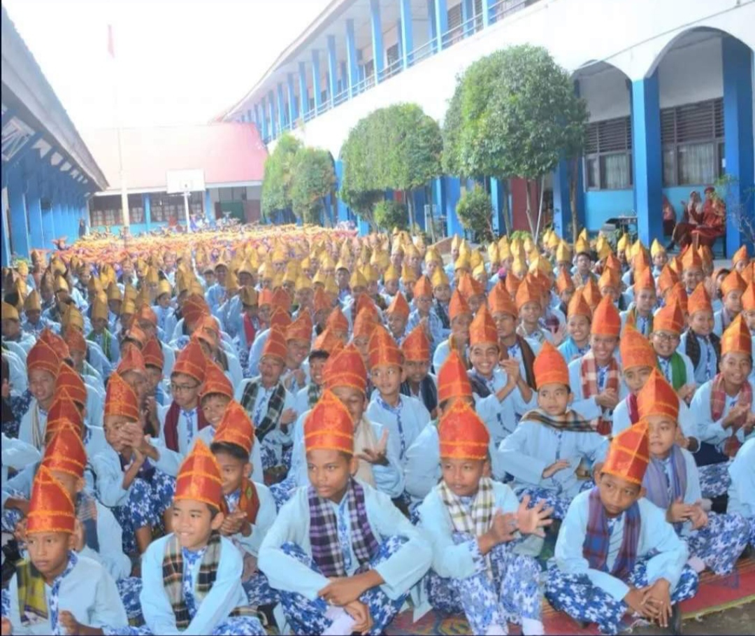Seluruh pelajar terlihat mengikuti kegiatan adat, seni dan budaya Minangkabau dengan masing-masing mengenakan pakaian adat Minangkabau.