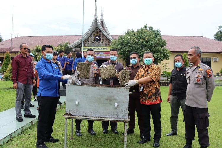 Pemusnahan barang bukti Narkotika jenis daun ganja kering ini, dipimpin langsung oleh Wakapolres Pasaman Barat Kompol Omri Yan Sahureka, S.H., S.I.K didampingi Kasat Resnarkoba AKP Eri Yanto, S.H, dan dihadiri Kepala Kejaksaan Negeri Pasaman Barat diwakili oleh Jaka Saputra, A.Md, Panitera Pengadilan Negeri Pasaman Barat Warman Priano, S, Kasubbag Umum BNNK Pasaman Barat Gideon Gerhard Silitonga, S.P, Kasat Tahti Polres Pasaman Barat IPTU Ralim, Kasiwas Polres Pasaman Barat AKP Alwi, Kanit I Satresnarkoba, Aipda Rosteti, S.E, Penasehat hukum Fadhlil Mustafa, S.H., M.H dan tersangka MI (41).
